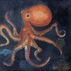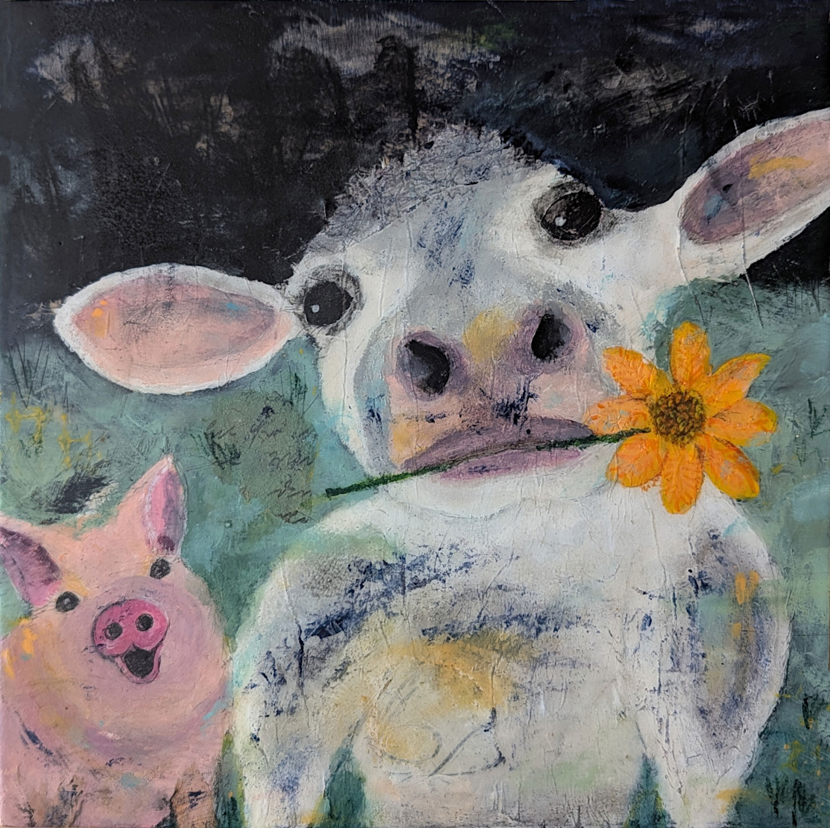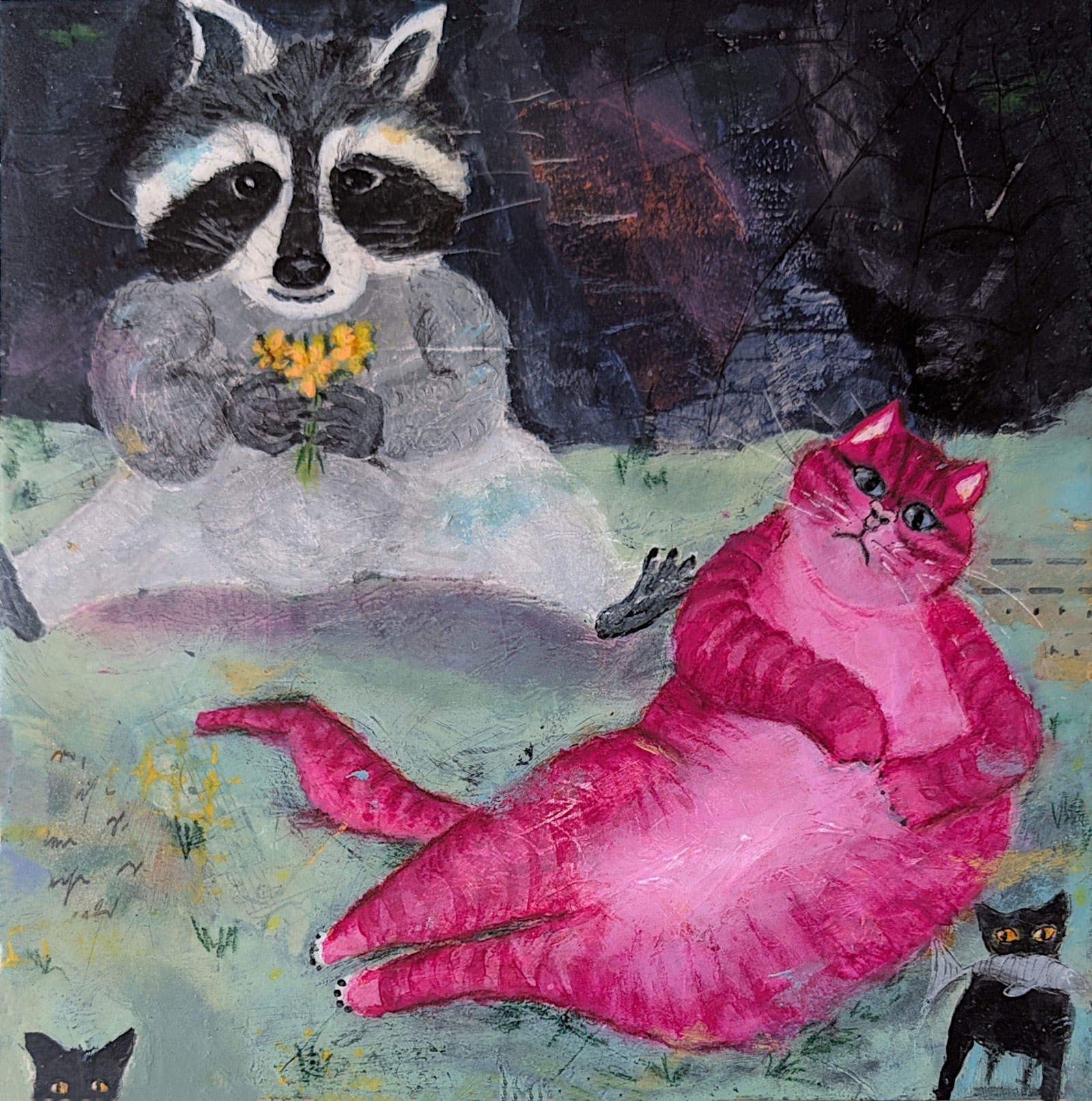 The layered, textured, mixed media paintings explore coexistence, staying, adapting and continuing without resolution and answers