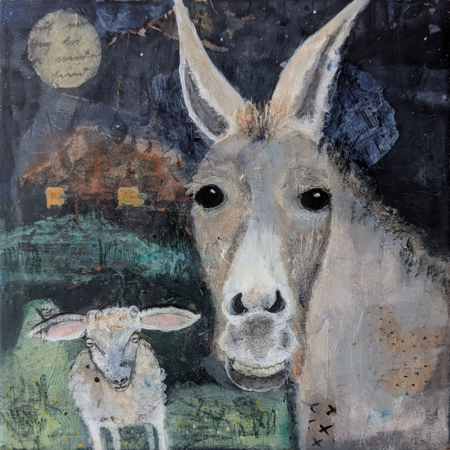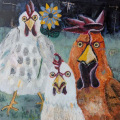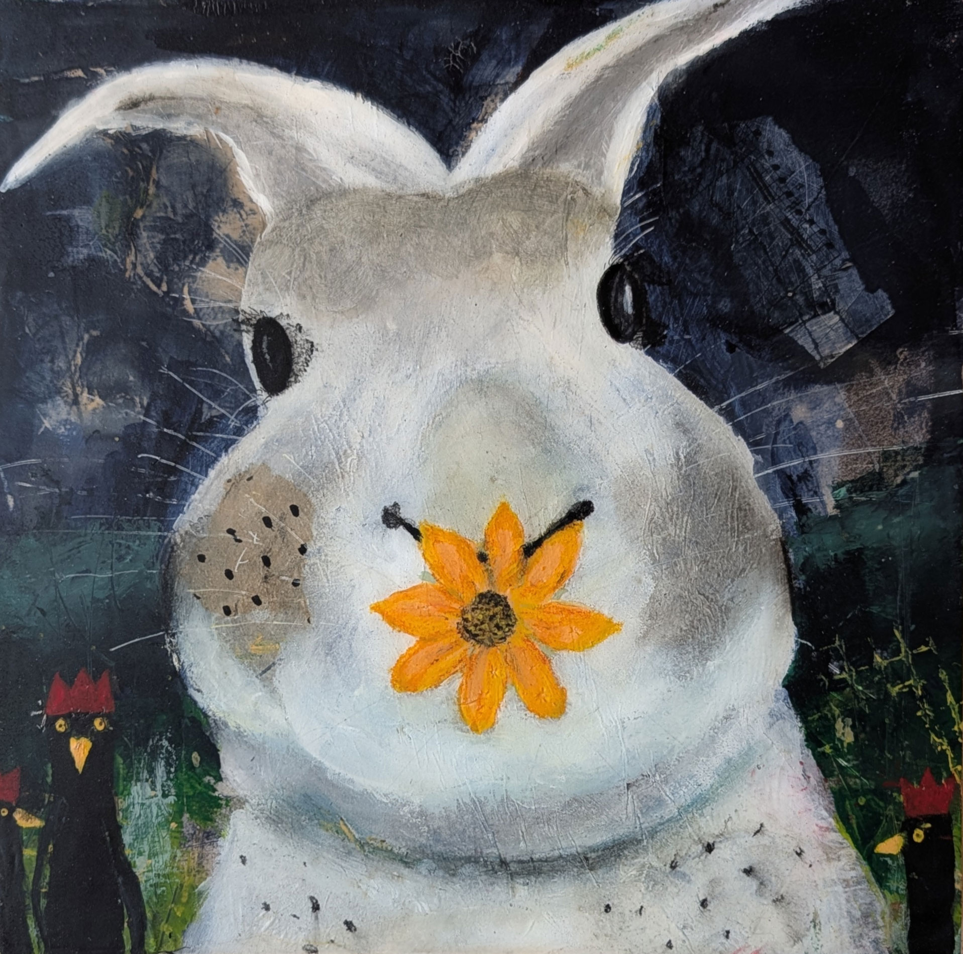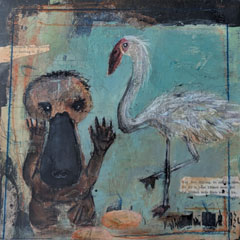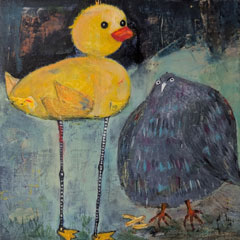 The layered, textured, mixed media paintings explore coexistence, staying, adapting and continuing without resolution and answers